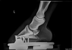 The only way to definitively diagnose a negative plantar angle is through precision radiography of the hind feet. At Daniel Equine, we use digital imaging to evaluate the following: